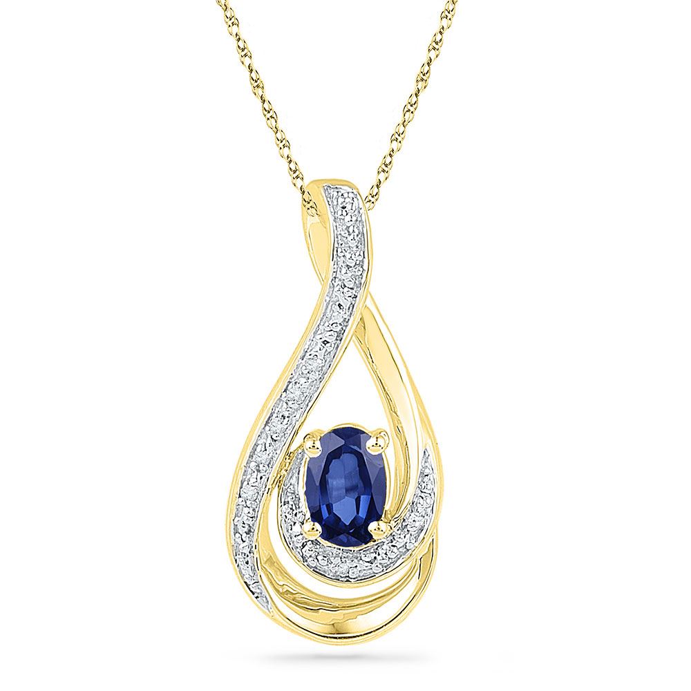 REF-10A9V - SKU: GD101293 ---- Oval Lab-Created Blue Sapphire Solitaire Diamond Pendant .02 Cttw 10kt Yellow Gold
