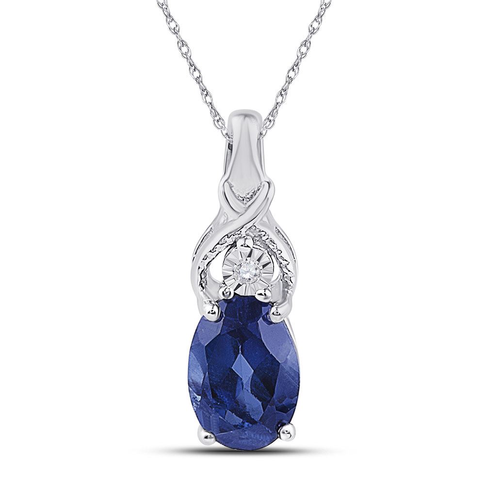 Sterling Silver Womens Oval Lab-Created Blue Sapphire Solitaire Diamond Pendant 7/8 Cttw