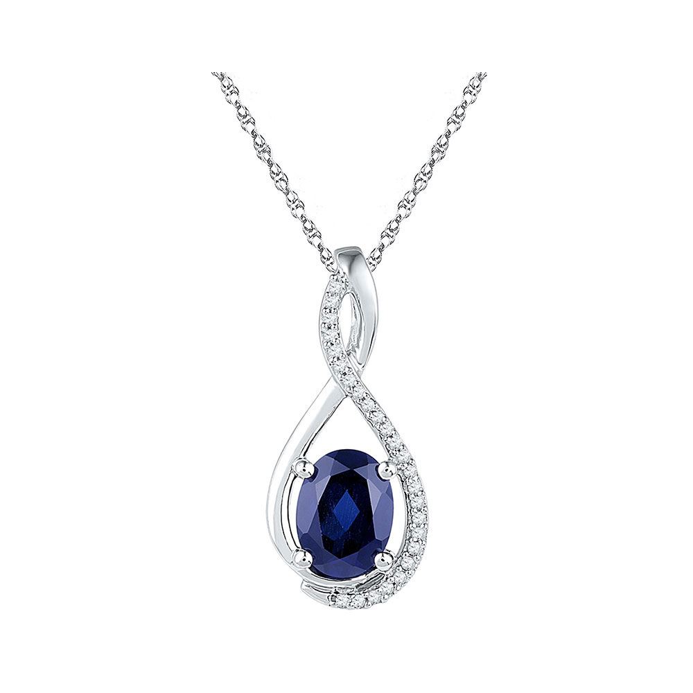 10kt White Gold Womens Oval Lab-Created Blue Sapphire Solitaire Pendant 1-5/8 Cttw