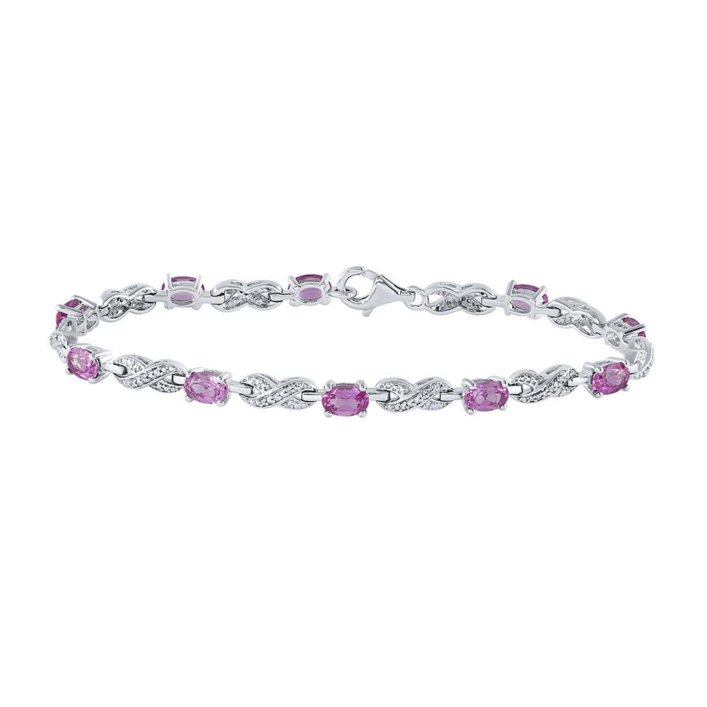 Sterling Silver Womens Oval Lab-Created Pink Sapphire Fashion Bracelet 3-7/8 Cttw