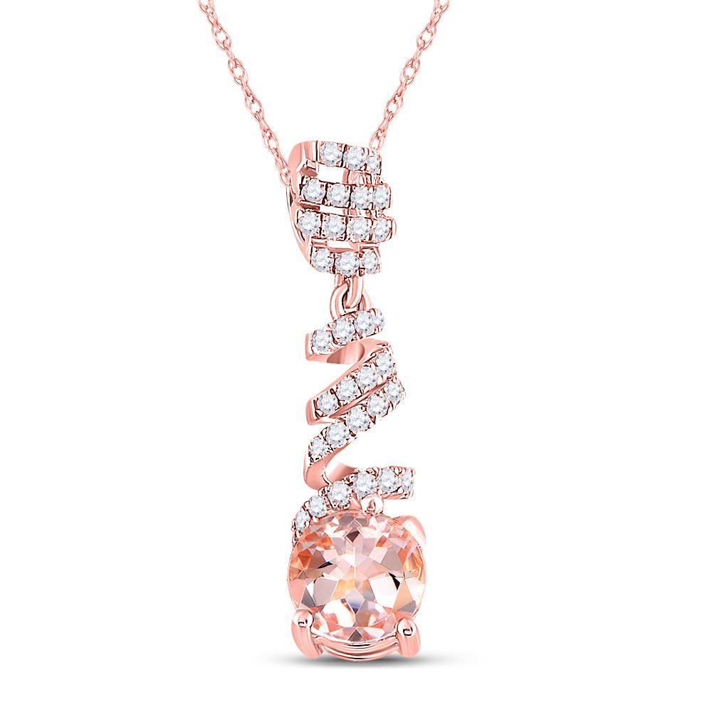 10kt Rose Gold Womens Oval Morganite Diamond Spiral Solitaire Pendant 1 Cttw