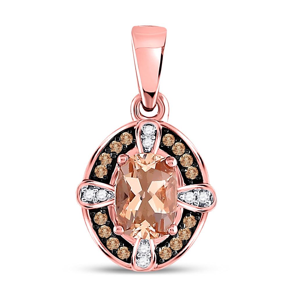 REF-20H0W - SKU: GD130049 ---- Oval Morganite Fashion Solitaire Pendant 1.00 Cttw 10kt Rose Gold