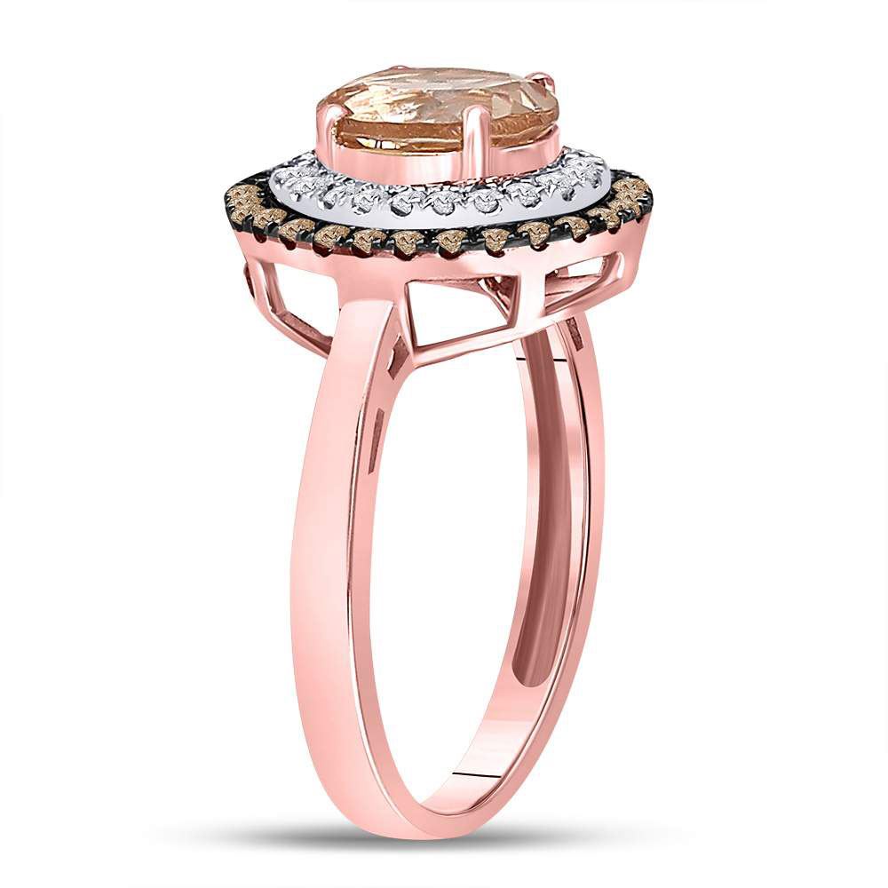 10kt Rose Gold Womens Oval Morganite Solitaire Diamond Fashion Ring 1-1/2 Cttw