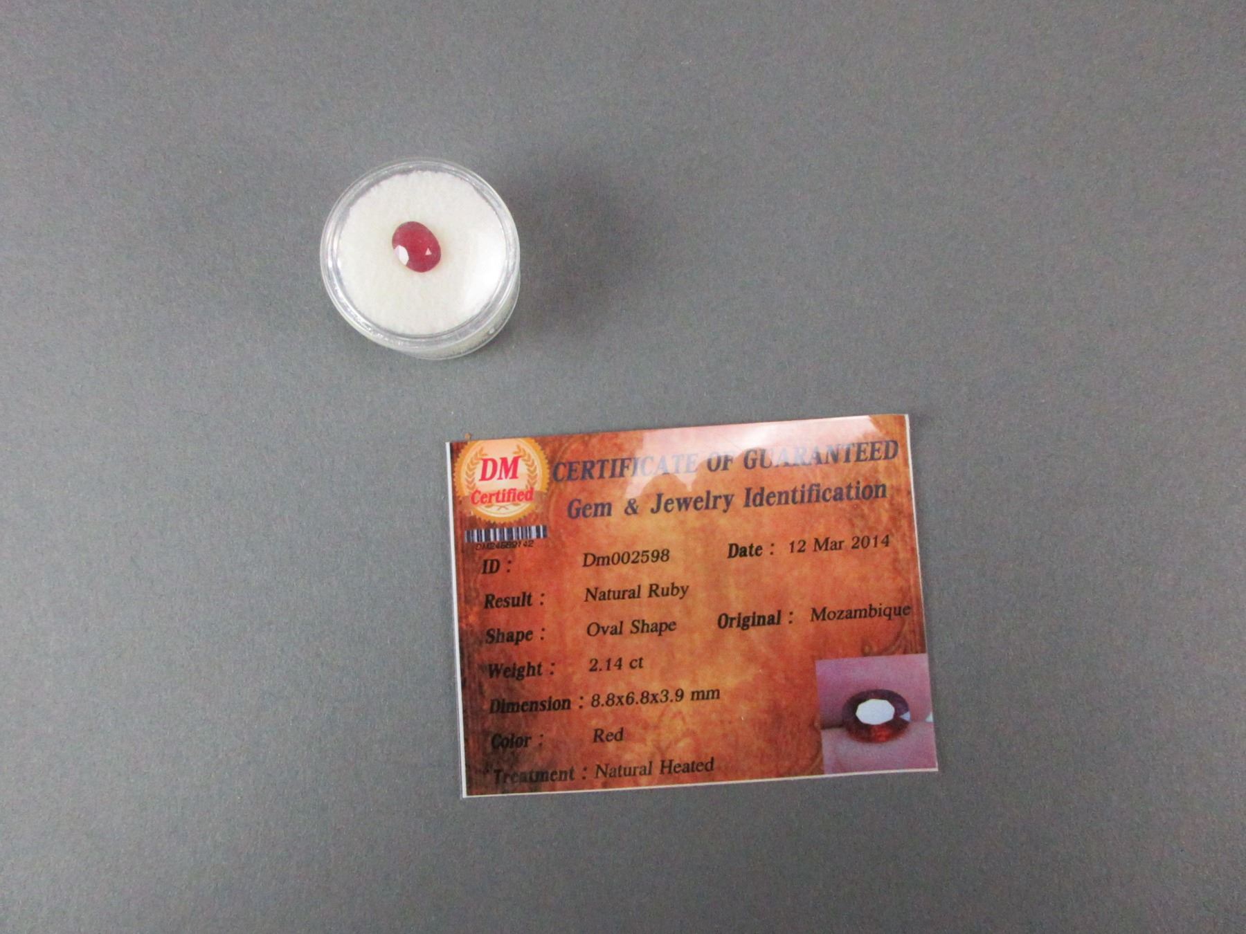 Oval Natural Ruby- 2.14 CT- Certificate Of Guarantee
