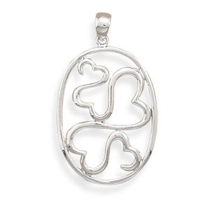 Polished sterling silver oval pendant with open heart design. Pendant measures 36mm x 20mm. .925 Sterling Silver
