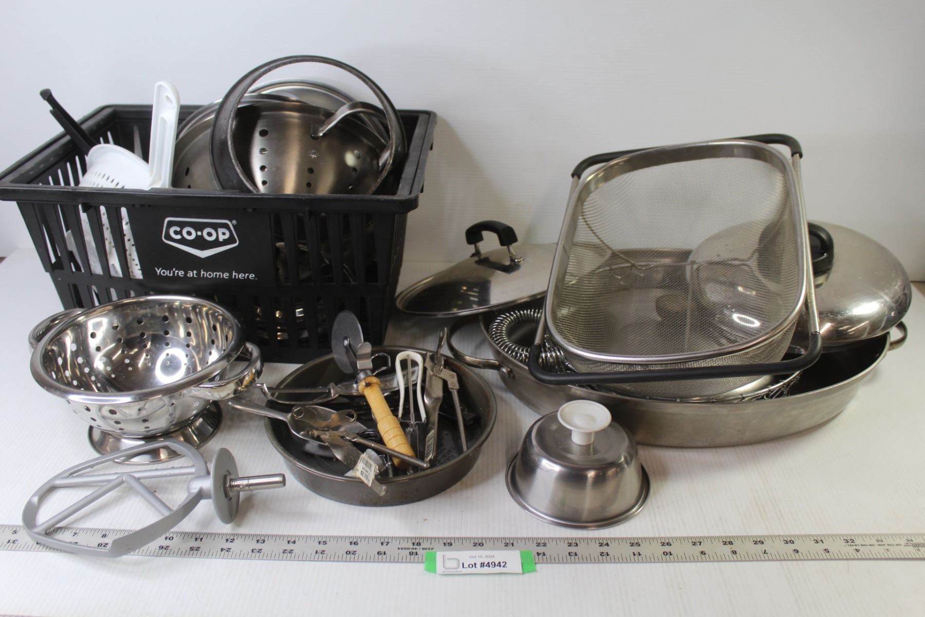 Oval Pan w/Handles - Assorted Strainers & Lids - COOP Plastic Basket - Wire Rinse Basket