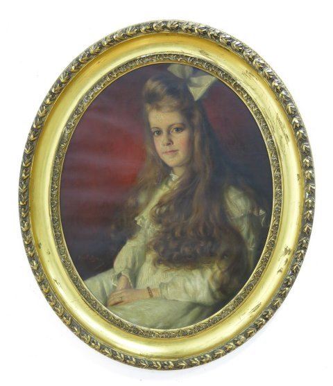 Oil on canvas. Unsigned. Finely carved giltwood frame. Approx. 30" H x 26" W unframed, 37 1/2" H x 33" W framed. Restoration.