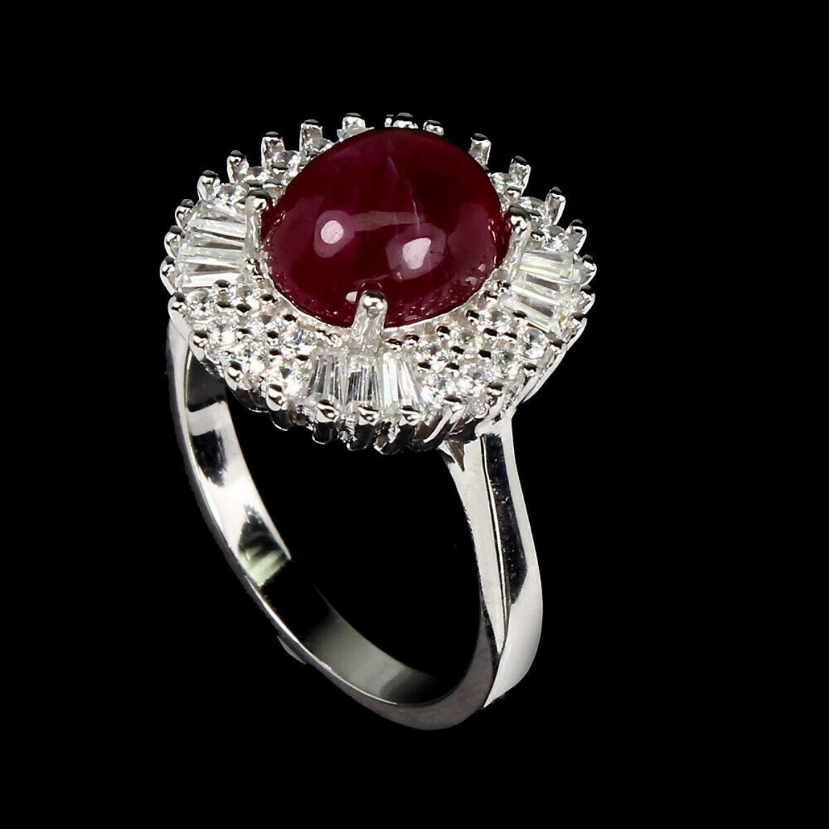 925 STERLING SILVER;PLATE....14K WHITE GOLD;RING SIZE _-8 (resizeable)MAIN STONE-RUBY;OTHER GEMS-CUBIC ZIRCONIATOTAL WEIGHT-32.48 CT (TOTAL WEIGHT OF SILVER + STONE)DIMENSION* STONE 10.0 X 8.0 MM. * CZ 1.0 TO 3.0 X 1.5 MM. * RING SIZE 8.0 * FACE RING 18.0 X 16.0 MM.MAIN STONE SHAPE-OVAL CABOCHON;MAIN STONE COLOR-TOP BLOOD RED;CLARITY/GRADE-TRANSLUCENT;LUSTER-CHARMING;TREATMENT- Yes;ORIGIN-MADAGASCAR;HARDNESS-9;