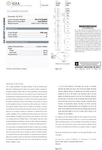 Oval Shape Diamond 0.88caratF:I2:GIA:Dim.:6.86*5.03*3.60:Cert.5151820866