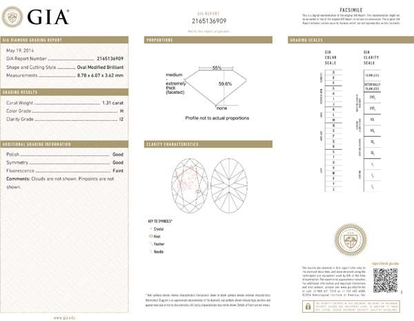 Oval Shape Diamond 1.31caratH:I2:GIA:Dim.:8.78*6.07*3.62:Cert.2165136909