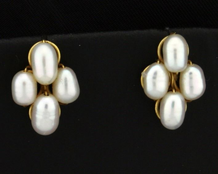 In 14k yellow gold, containing four oval shaped 6x4mm pears per earring. 5/8 inches long with friction backs. 2.5g.