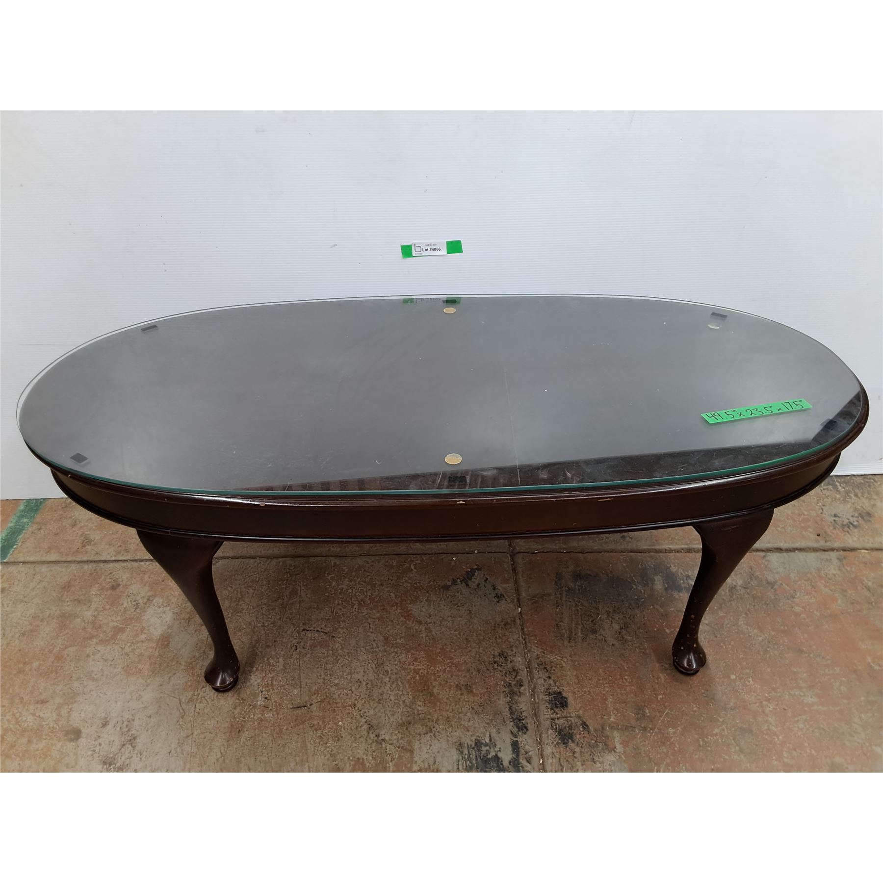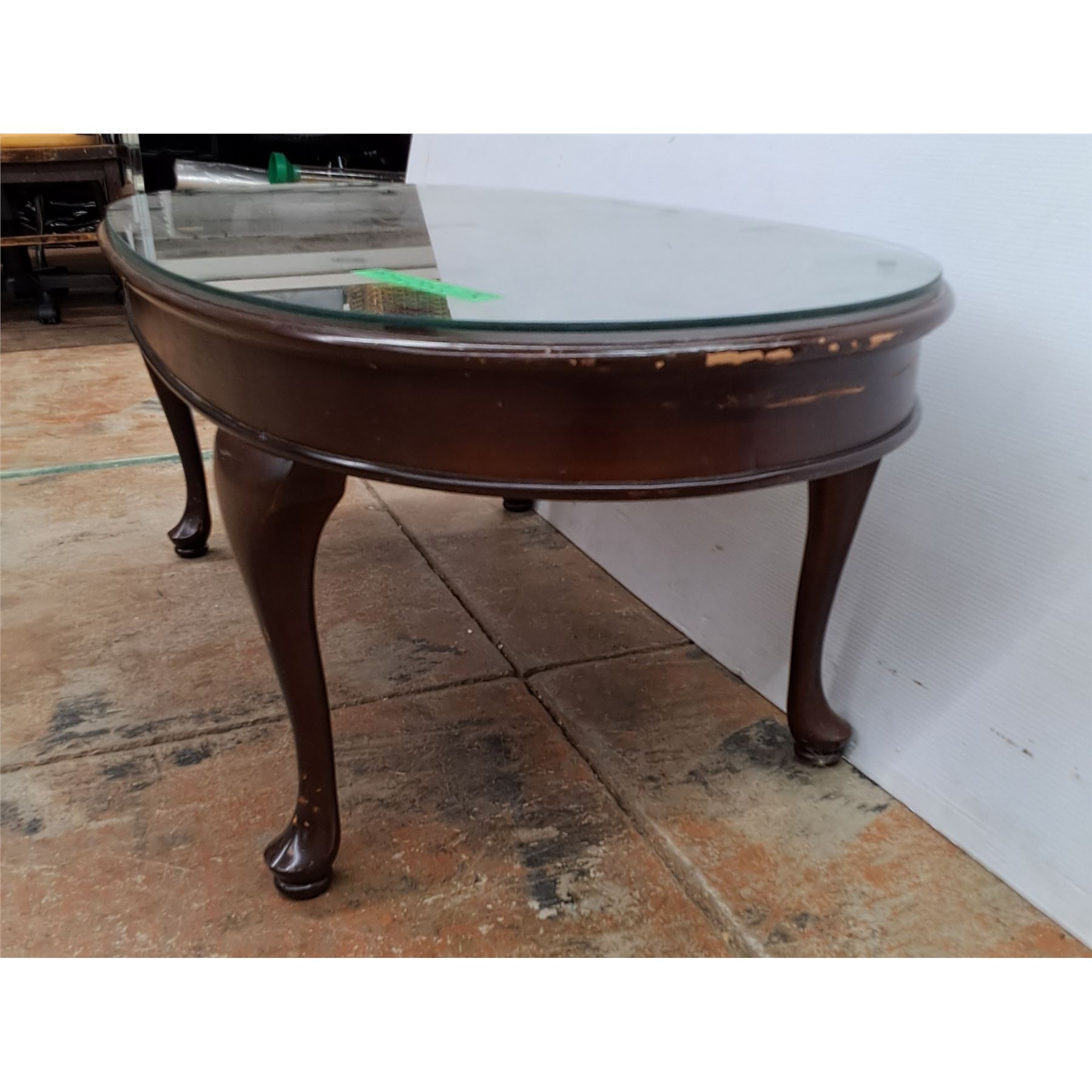 *Oval Wooden Coffeetable with Glass Top, Cannot Ship