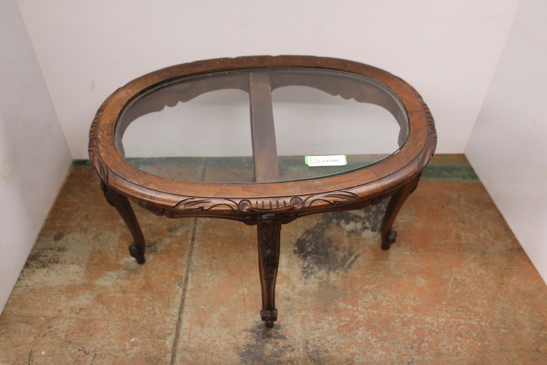 *Oval Wooden Side Table with Glass Insert - 18" x 27" x 19" High