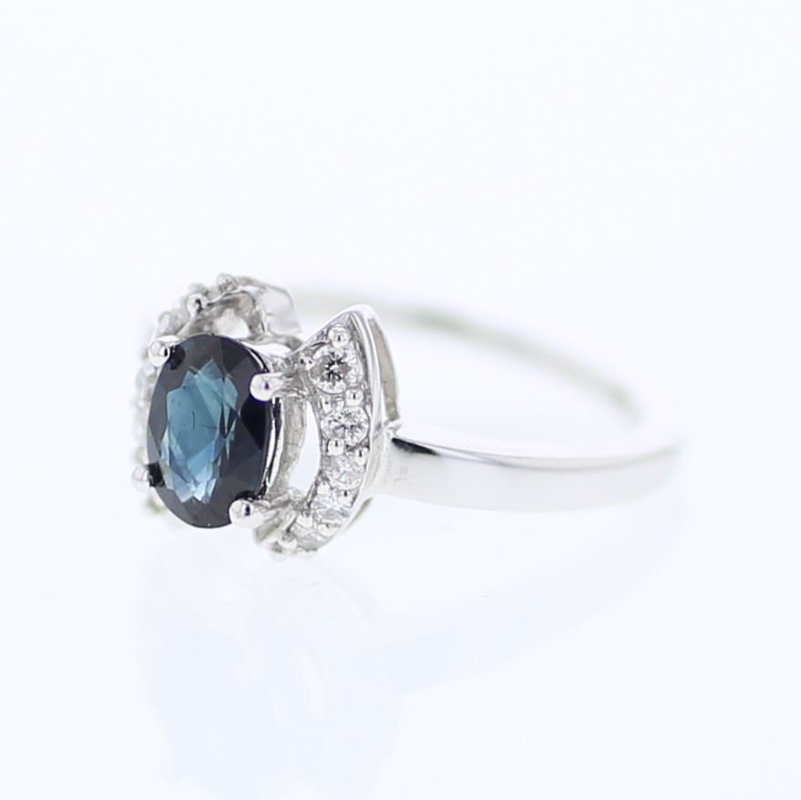 Oval cut Sapphire Prong-set Diamond Ring in 18K White Gold