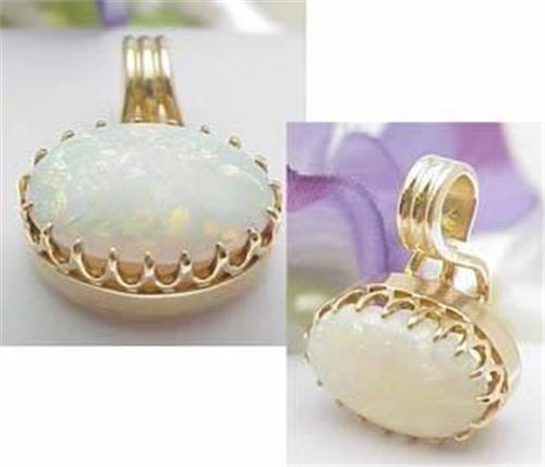 Oval opal 16x10mm set in a 14kt yellow gold pendant opal has crazing, hard to see without magnification