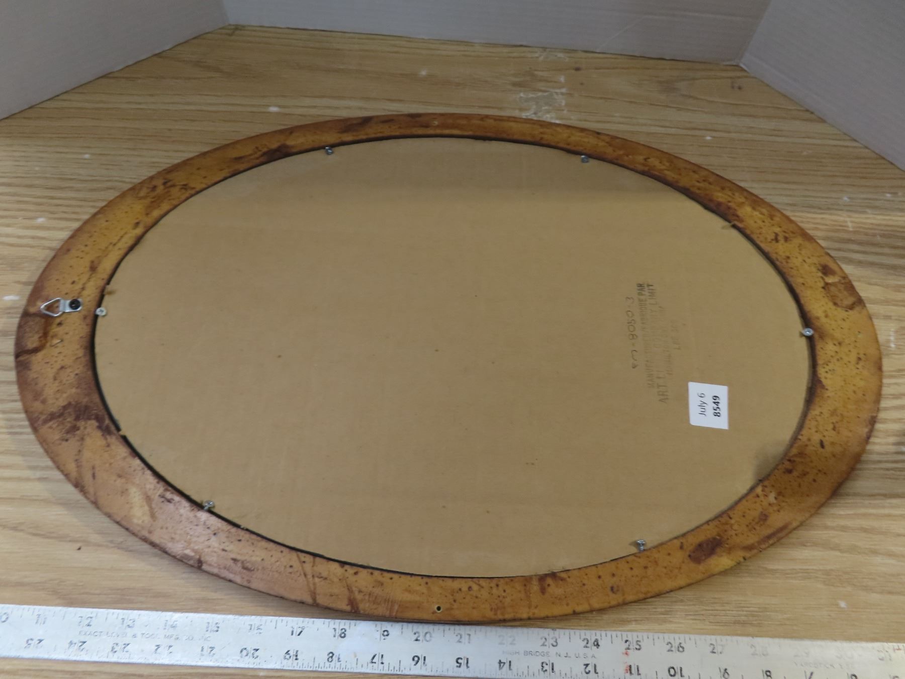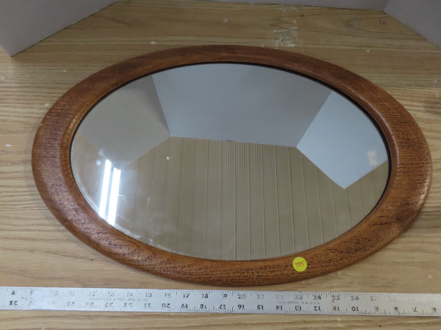 Oval shaped mirror in brown wooden frame- 24"X15"