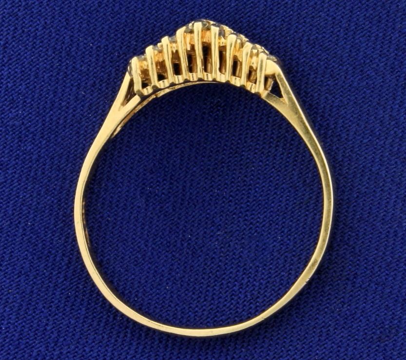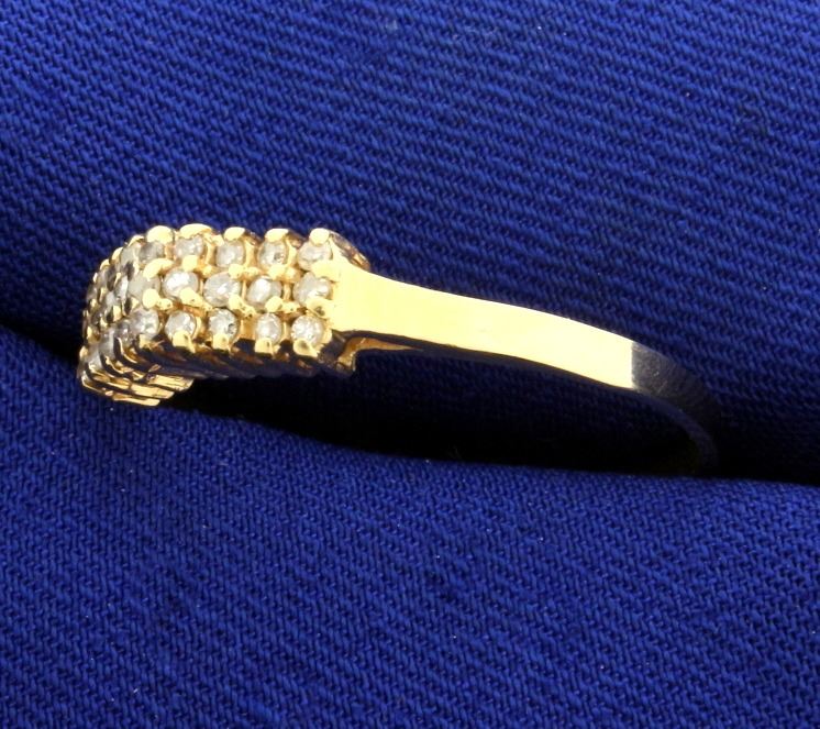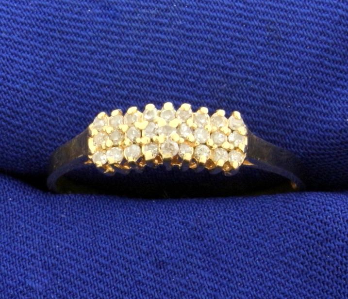 In 14K Yellow Gold. Contains twenty seven high quality .01ct Diamonds, I color/I clarity. Size 11. 2.5g