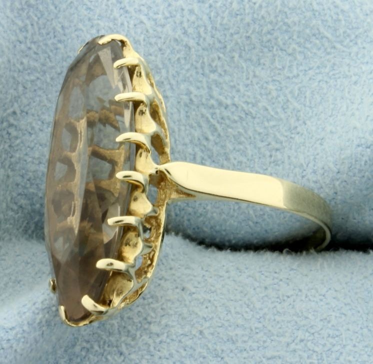 In 14K yellow gold, there is a 24x8.5mm oval gemstone. Size 8 4.6g
