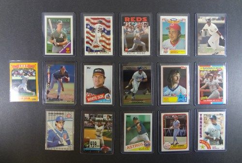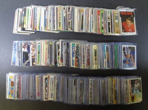 All your favorite Stars, Mostly NM-MT, Guaranteed big names such as Reggie Jackson, Nolan Ryan, Tom Seaver, Cal Ripken Jr., Henderson, Bonds, F. Thomas, Maddux, Brett, Yount, Schmidt, Clemens, Clark, Sandberg, Bench, Ozzie Smith, Winfield, Rose, Canseco, Sosa, A.Rod, McGwire, Gwynn, Murray, Griffey, Jeter and many other Major Star Cards. Mostly All Different only few duplicates. Awesome Star Card Lot. Est $270-$300