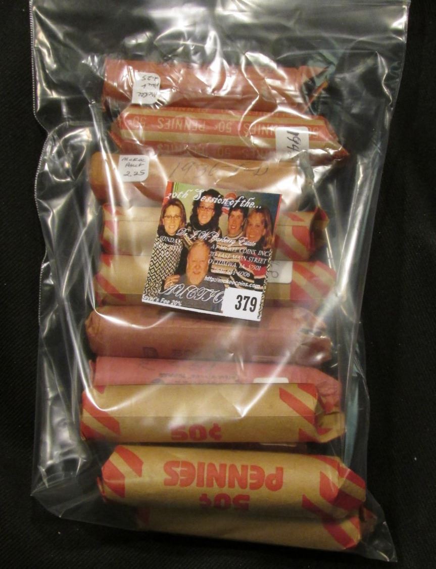 Over (500) Wheat Cents in paper wrappers sorted by date.