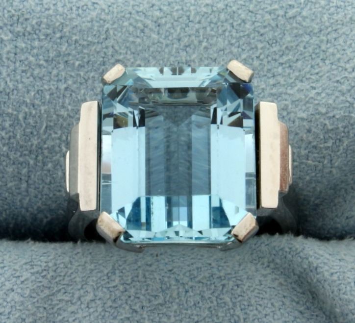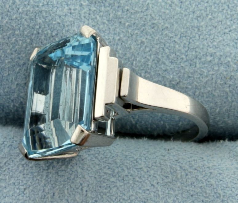 In 14k white gold, aquamarine is Emerald Cut and Measures 15.2x12.1x7.3 with exceptional clarity and color. Size 5. 8.0g.