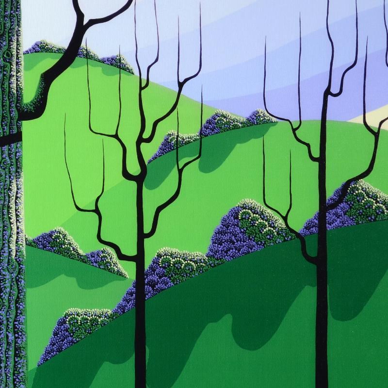 Larissa Holt, a student of distinguished artist Eyvind Earle(1916-2000), uses bold colors and breathtaking scenery to create images of Nature in her own unique style. "Over Hills" is a limited edition giclee on stretched canvas by Holt, numbered and bearing Holt's authorized signature. This piece comes gallery wrapped. Includes Certificate of Authenticity! Measures approx. 27" x 22" x 1.5" (image).