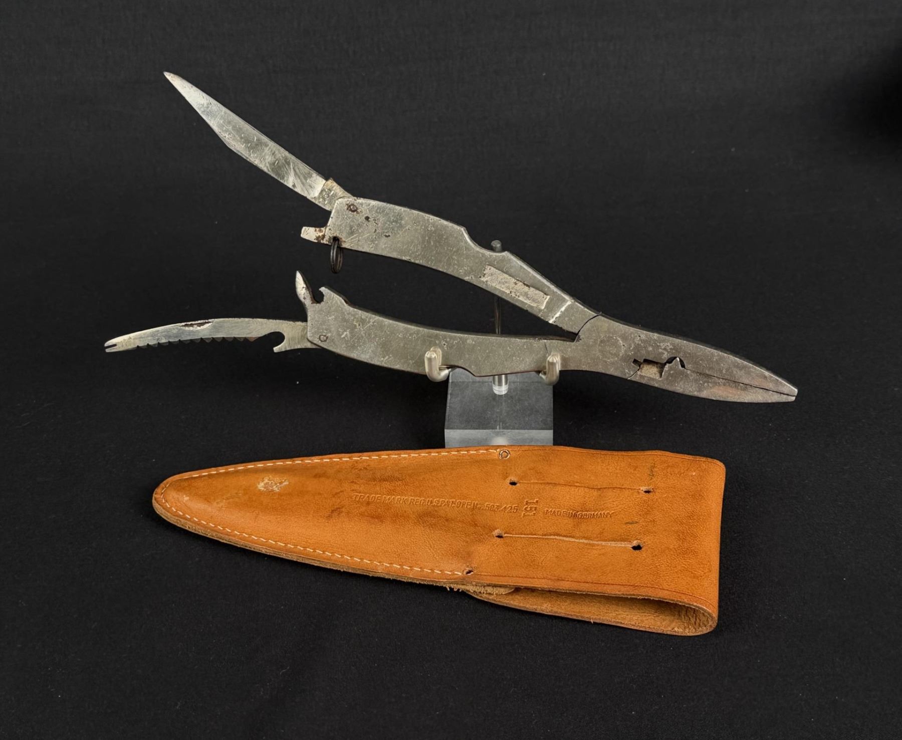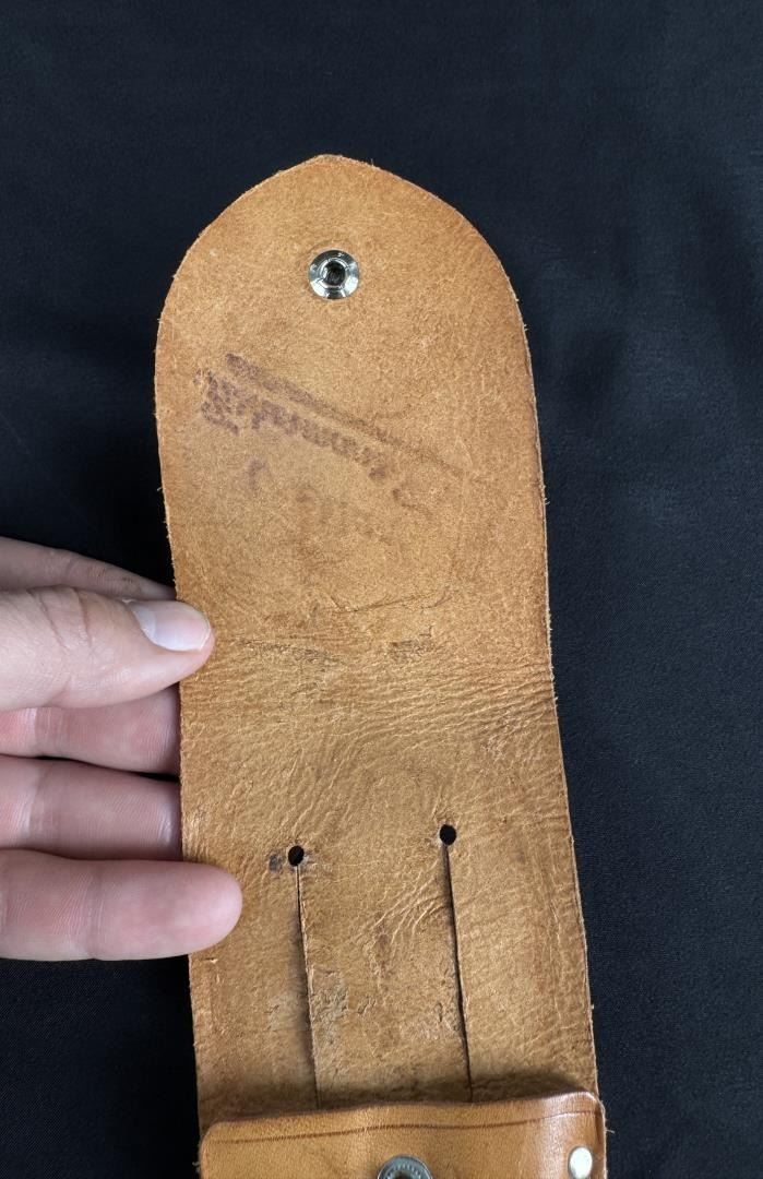 Includes leather sheath. 7 3/8" by 2 3/8"