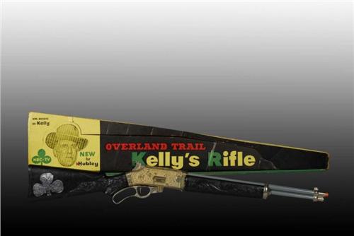 Description Includes original box. Gun is working. Plastic and diecast with oxidized finish. Decal on rifle butt with some scratching and wear. Picture of William Bendix as Kelly for NBC television show is pictured on box. Condition (Good - Very Good). Size 33" L.