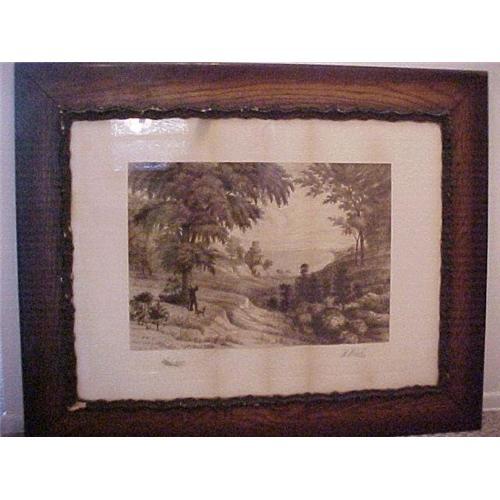 The scene depicts a fellow standing beneath a tree with his dog by his side and they are looking out to the bay. There is some age on the borders of the paper as you can see in the photos however the etching itself is in wonderful condition and mesmerizing to look at.