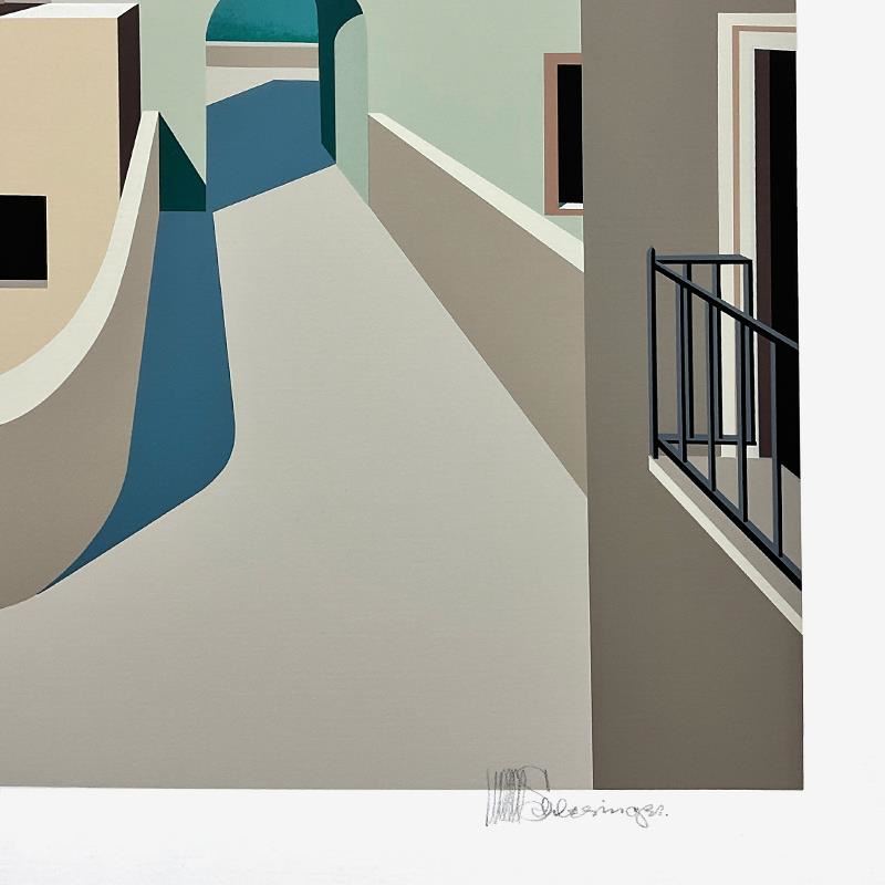 "Overpass" is a limited edition serigraph on paper by William Schlesinger (1915-2011), numbered 11/295 and hand signed by the artist. Includes Letter of Authenticity. Measures approx. 33.5" x 30" (border), 28.5" x 24" (image). There is a crease on the bot