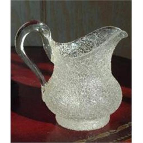 Overshot Creamer with a crystal applied handle. Long and wide spout. Perfect condition.4 1/4"" tall.