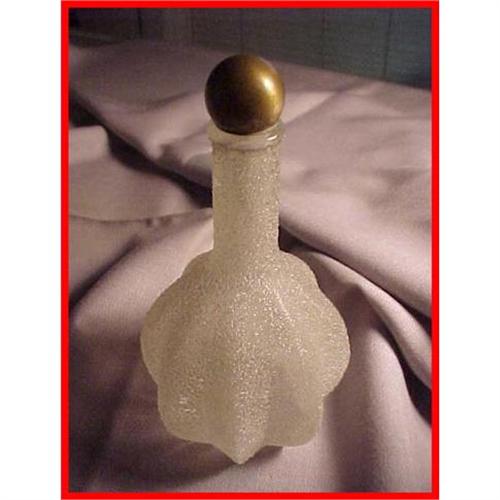 This 6-3/4" tall clear overshot glass barber hair tonic bottle has a metal screw on cap. This melon-shaped bottle was molded than rolled over crushed glass(when heated) to create the overshot texture. I bought from a family that their Grandfather had a barbershop in the 1920's - 1940's period. Unsigned. Good condition. A nice unusual overshot barbershop related item.