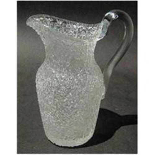 Overshot Miniature Creamer that is 5 1/4 inches tall. Circa 1870's. It can be your personal creamer in the morning with your coffee. The crystal applied looped-top handle comes a little higher than the top of the creamer's mouth. This piece is all hand blown. It has a ground pontil. Excellent condition.