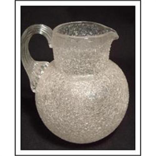 Overshot pitcher made by the Sandwich Company with a hand applied Victorian reeded handle. No damage. 5 1/4"" tall.