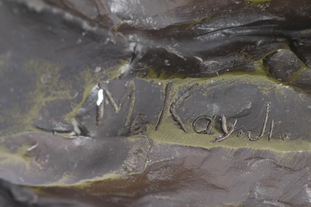 Depicting Indian on mountaintop praying to the Gods. Has a moss green finish. Measures 38" x 28" x 10". LOCAL PICKUP ONLY!