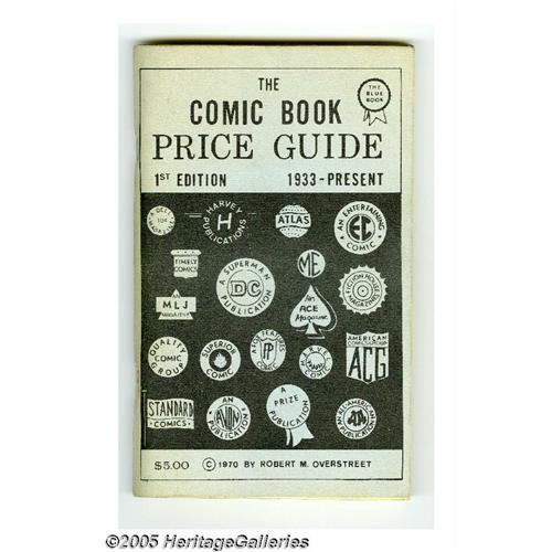 <B>Overstreet Comic Book Price Guide #1 Second Printing (Gemstone, 1970) Condition: FN.</B></I> This is the blue-cover second printing of the very first Comic Book Price Guide... who could have dreamed back in 1970 that this guide to collectibles would itself become a collectible. After the first printing sold out, this second printing was released later the same year, with Bob Overstreet and his family collating and stapling every copy! The prices are, of course, an entertaining read for any comic lover of today -- " "<B>Action Comics</B></I> #1 was priced at all of $300 in Mint condition, and we're really kicking ourselves for not stocking up on " <B>Showcase</B></I> #4 ($12 in Mint) or "<B>Suspense Comics</B></I> #3 ($5). Don't miss out on the book that helped make comic fandom what it is today. Overstreet 2005 FN value = $750. <BR><BR><B>Important notice:</B> Heritage usually auctions material at the rate of 200-250 lots per hour. On some occasions eBay Live bid software or the Internet may not be able to keep up with the pace of the auction. We recommend placing a realistic absentee bid now as insurance to avoid disappointment. Occasionally the auctioneer may eliminate or reject an eBay Live bid, and the auctioneer may also reopen a lot after the close of the eBay live bidding (usually because we missed an audience bid), and may reject your bid even if it shows you as the winning bidder. By bidding via eBay Live, you agree that Heritage may award the lot to another bidder at its sole discretion under the circumstances described above or any other reasonable circumstances. Since eBay bids are not shown to us until we open the lot on the floor, we treat those bids just like floor bids. In most cases the floor responds before the eBay bid is presented to us, due to Internet lag time, so for consistency we have made it a policy that floor bids are always considered first over tie eBay live bids. Also please note that all Heritage lots purchased through eBay Live