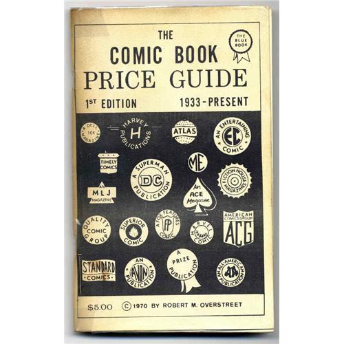 <B>Overstreet Price Guide #1 First Printing (Robert Overstreet, 1970) Condition: FN.</B></I> This is the original white-cover first printing of the very first Comic Book Price Guide -- it's become as collectible as the comics listed inside! This first printing was reportedly hand-bound by Mr. Overstreet and his family, a tall order since at a thick 200 pages, the book probably never should have been staple-bound in the first place. Except for staple tears and browning at the spine, this copy has survived the ravages of time pretty well. The prices are, of course, fun to read for today's collector -- how does a More Fun Comics #52 in Mint for $100 sound? Answer: pretty good, but not as good as a Showcase #4 in Mint for $12! This book helped make comic fandom what it is today. Note that the current Overstreet Guide only lists GD, FN, and NM values for this item. Overstreet 2005 FN value = $900; NM value = $1,800.