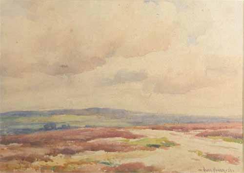 Owen Bowen (1873-1967) watercolour, Open landscape, signed and dated '28, 13 x 18 ins. £100-150