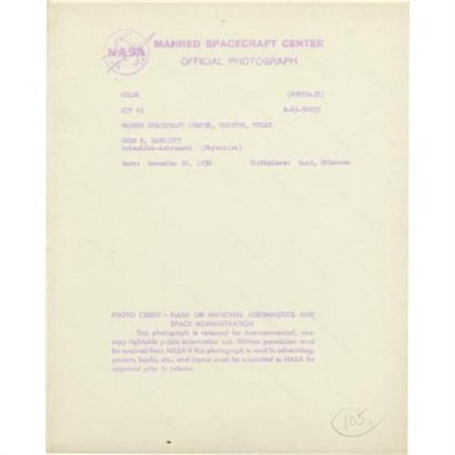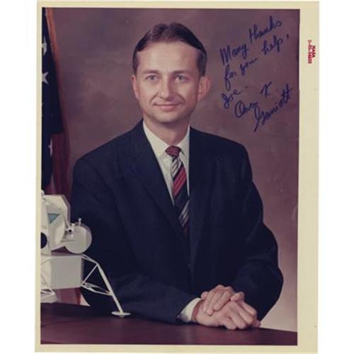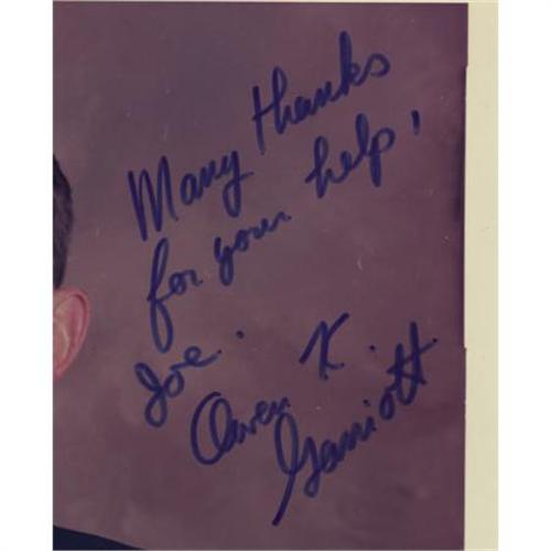 <B>Owen K. Garriott Signed Color Photograph,</B></I> 8" x 10", "<I>Many thanks/ for your help,/ Joe./ Owen K./Garriott.</B></I>" <I>From the collection of renowned former physical trainer of the astronauts Joe Garino. This lot is accompanied by a signed certificate of authentication from Garino verifying its provenance.</B></I><BR><BR><b>Shipping:</b> Flat Material, Small (<a target="_blank" href="http://www.heritageauctions.com/common/shipping.php">view shipping information</a>)