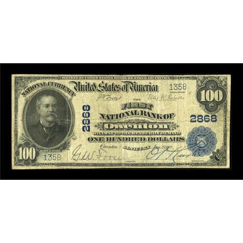 <B>Owenton, KY</B></I> - $100 1902 Plain Back Fr. 698 <B>The First NB</B></I> Ch. # 2868<BR> Bold penned signatures are present on this evenly circulated issue. This example is the finer of the two known $100 Plain Backs. <B>Fine.</B></I><BR><BR><b>Shipping:</b> Coins & Currency (<a target="_blank" href="http://www.heritageauctions.com/common/shipping.php">view shipping information</a>)