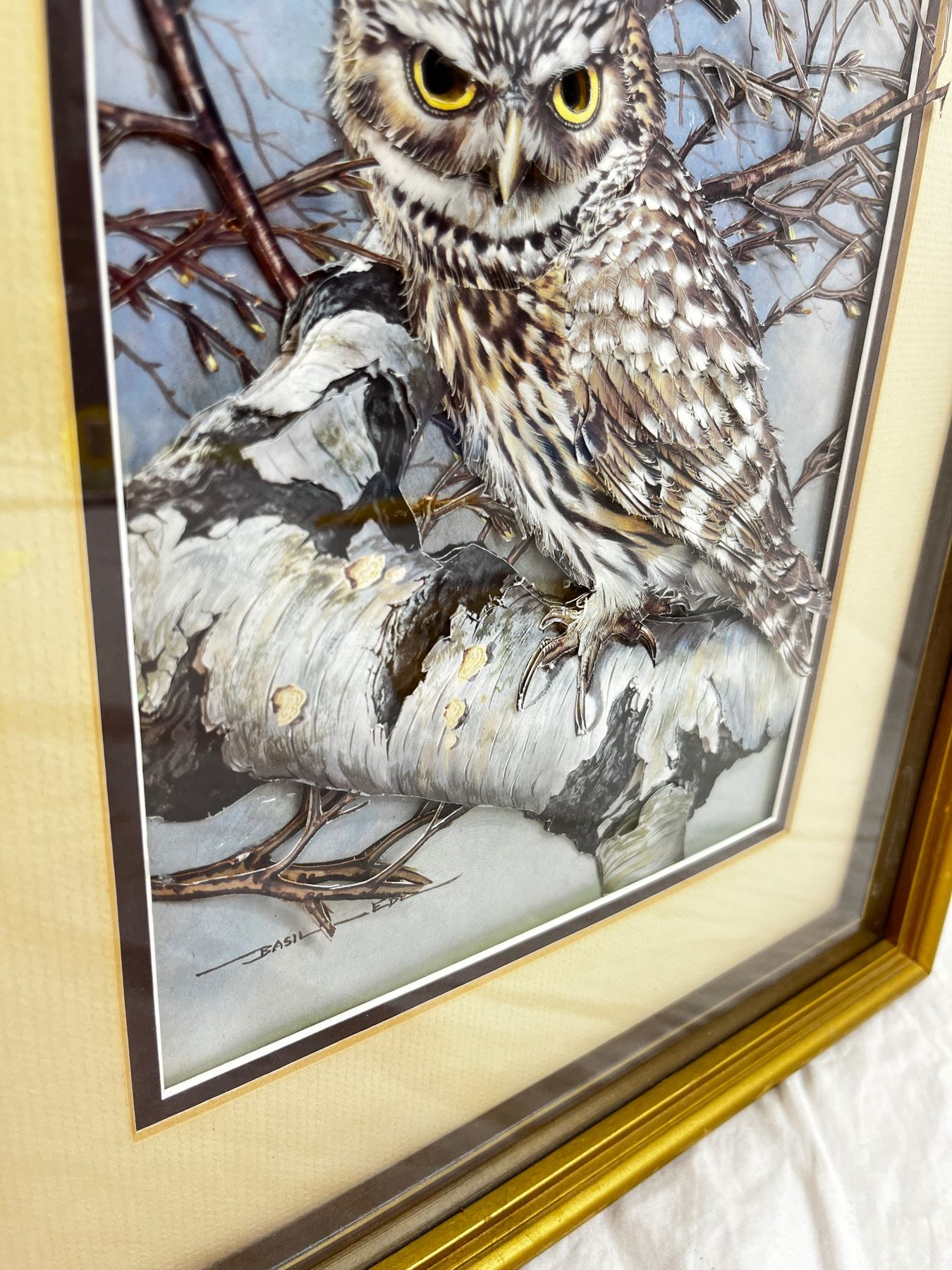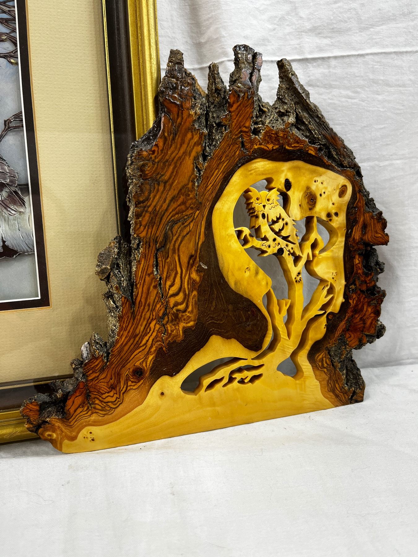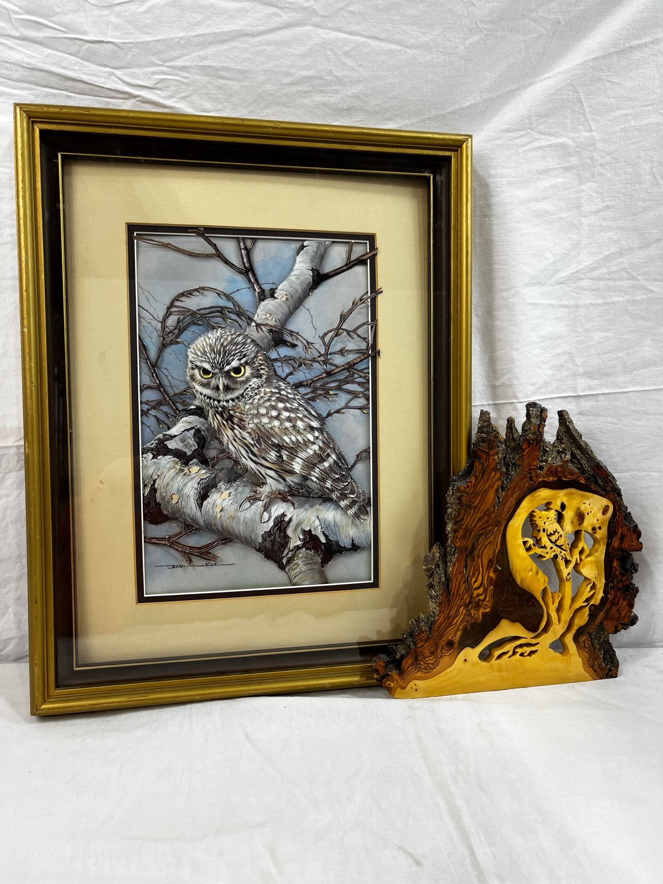 3D Owl By: Basil Ede 18"L x14"W & Wooden Carving 9.5"L x 9.5W
