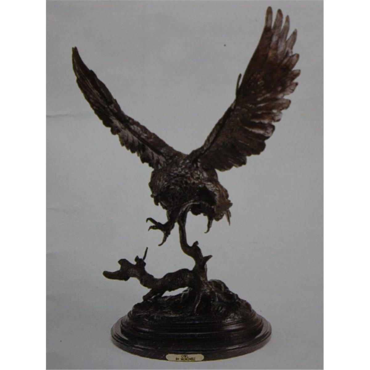 "Owl" Bronze Sculpture - After Moigniez - Museum Brown Finish - Mounted On Fine Italian Marble Base - Signed - Mint Condition - 35"H X 21"W - Lost Wax Cast Bronze