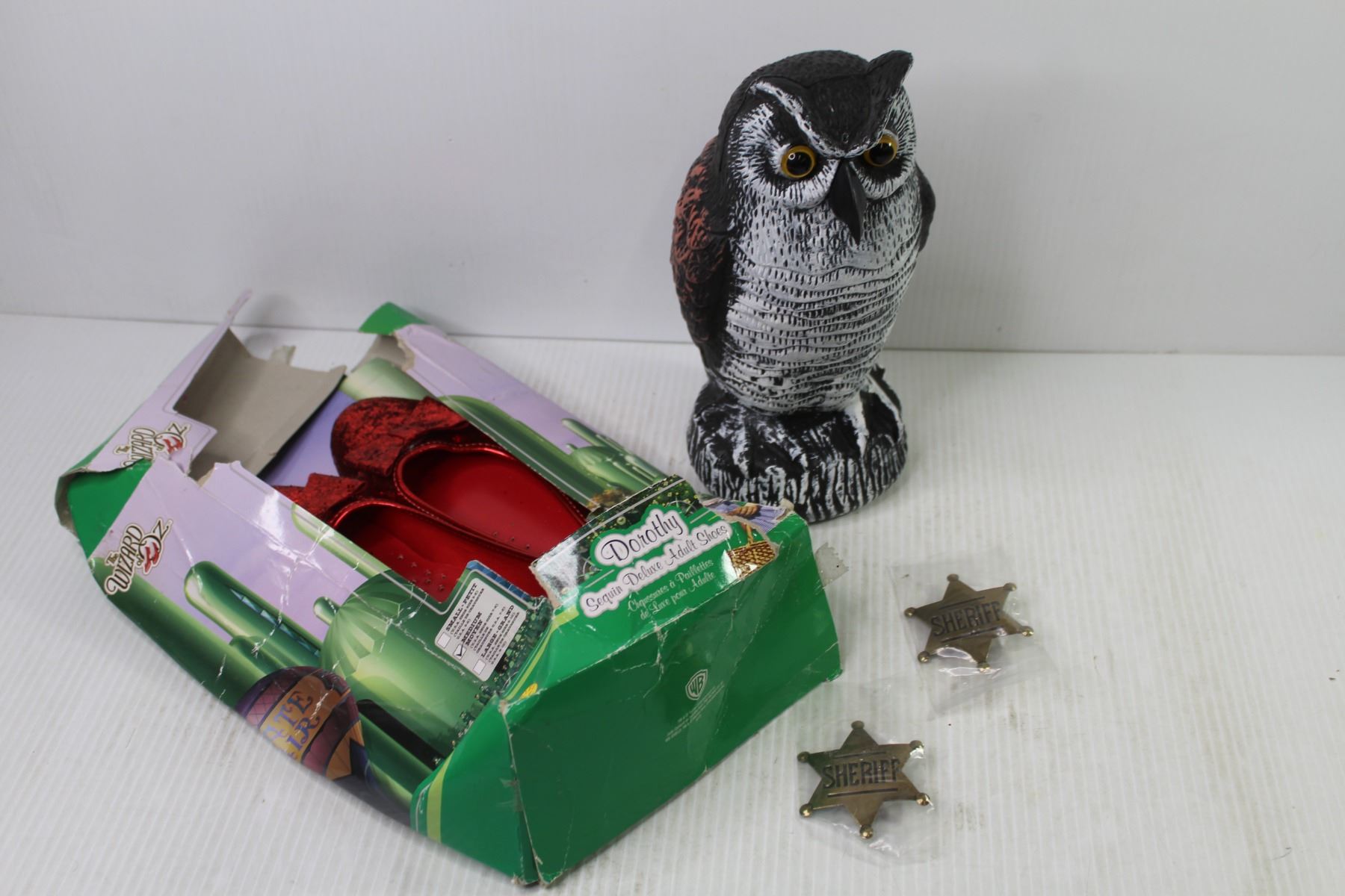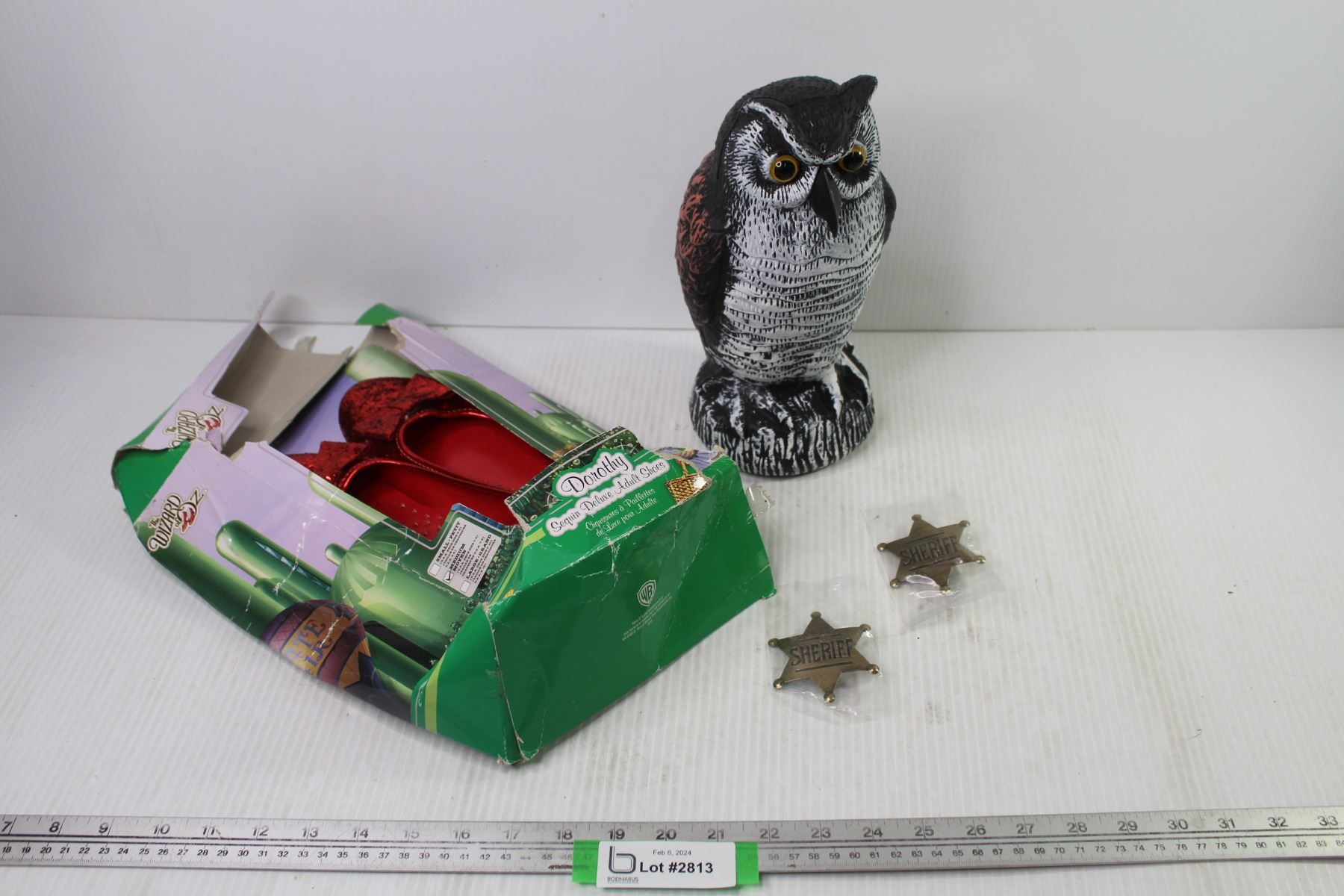 Owl Decoy, Wizard of Oz Ruby Slippers, Sheriff Badges