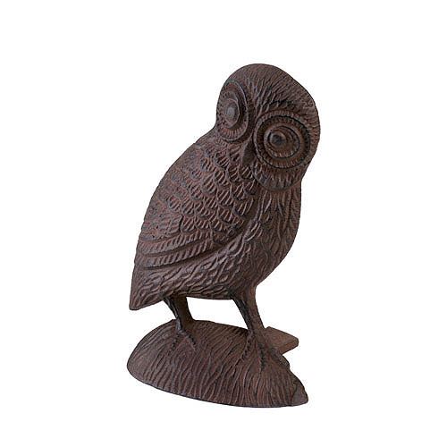 Owl Door Stopper **|**|** Whos holding the door open? This charming cast iron owl, thats who! This artistic design is perfect for propping your door open to let fresh air in. Features finely detailed features and works with most doors. Item weight: 1.6 lbs. 3-1/4 x 5" x 7-3/4" high. Cast iron. UPC: 849179016715."
