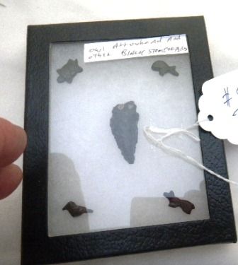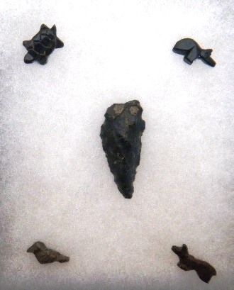 Arizona Owl Effigy arrowhead and four black stone figures. Arrowhead is 1.5 inches Shipping $12.50