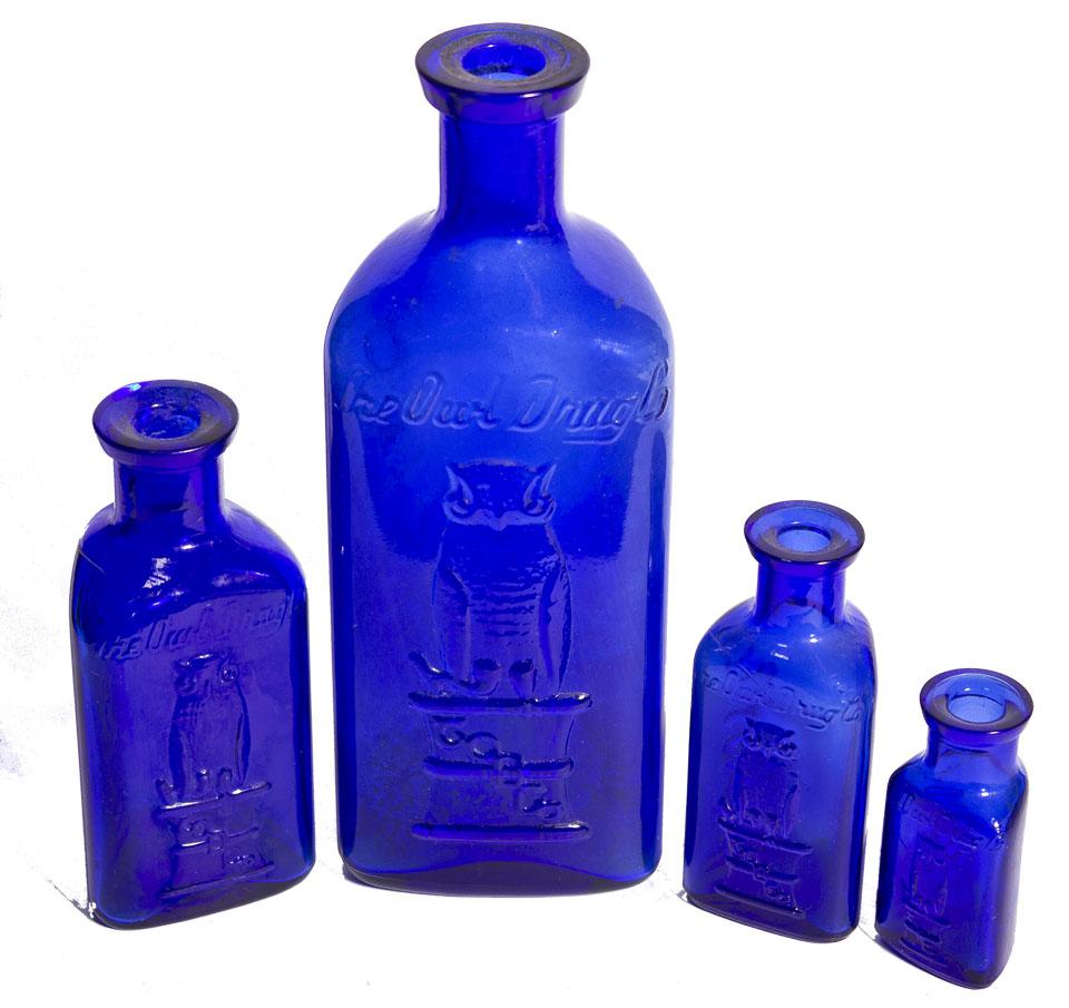 Lot of 4.  All different sizes.  Two wing owl poison bottles.  Very clean and mint condition.