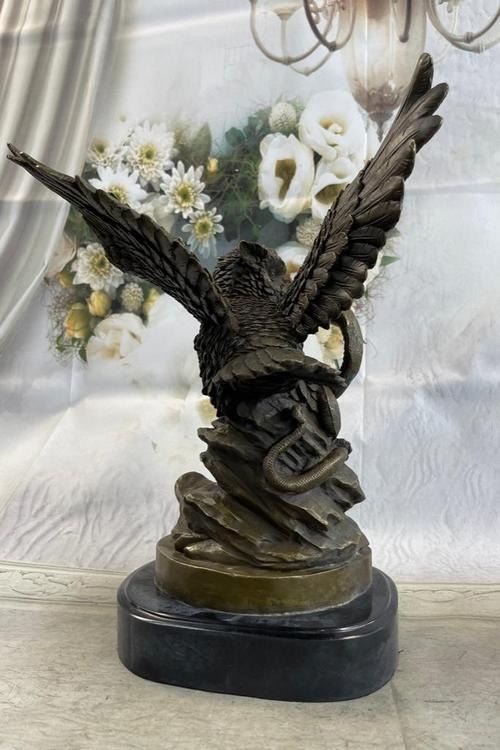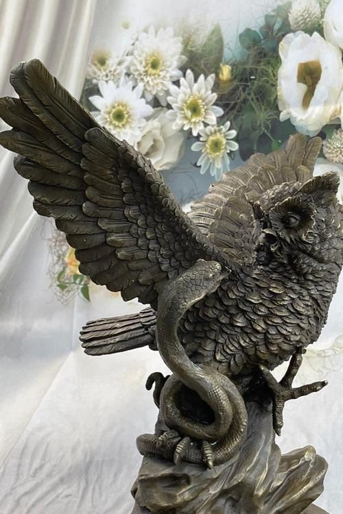 Owl and Snake Bronze Statue Sculpture on Marble Base