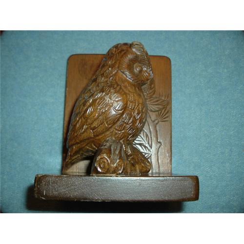 Hand-carved wooden owl. 5" tall, mounted on 4.75" x 4.75" x6" wooden stand