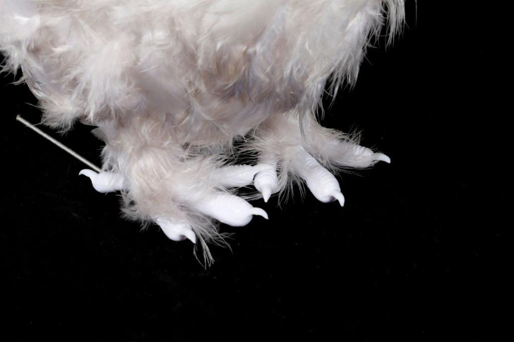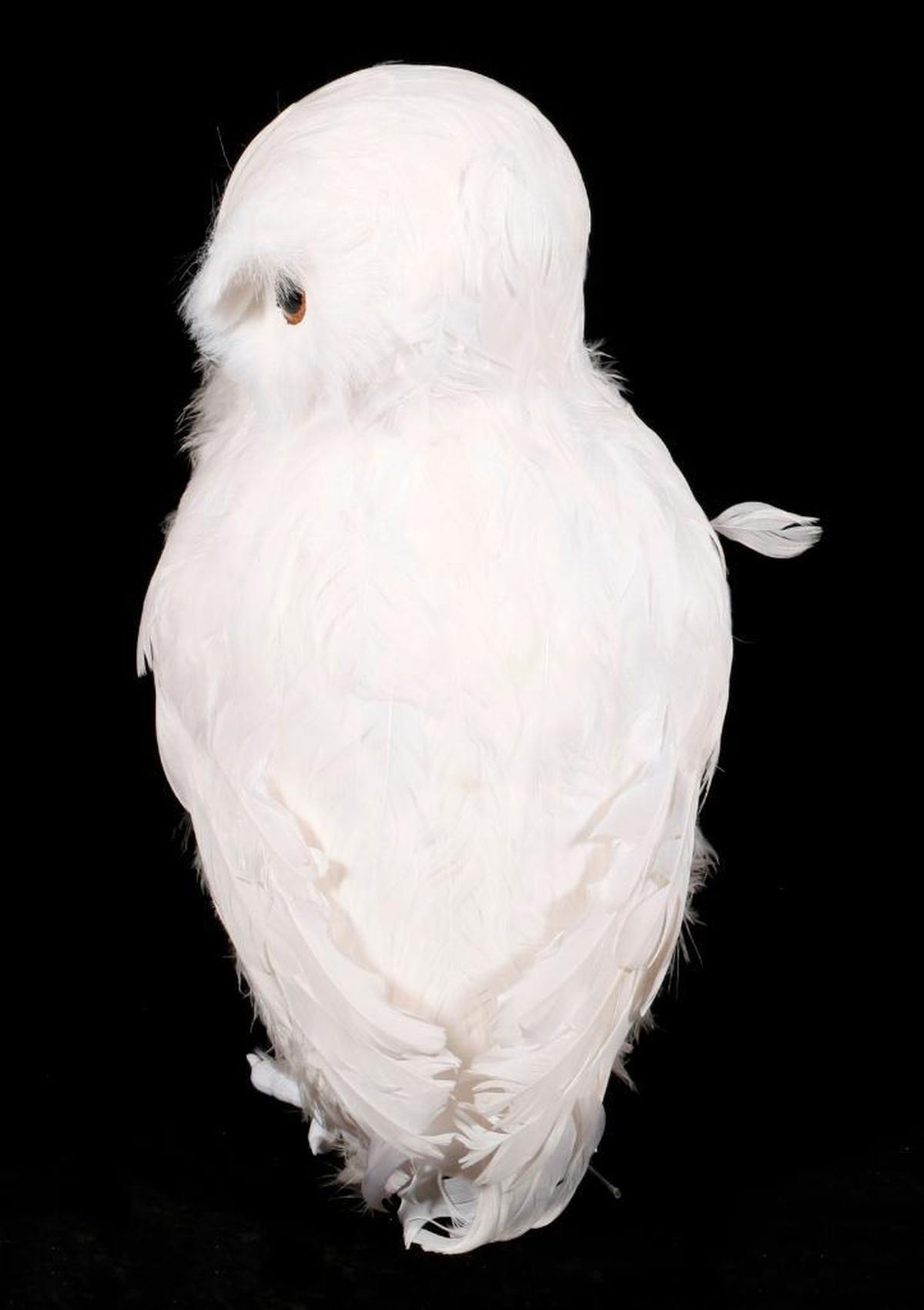 An ornament in the form of an owl measuring 13 1/2 inches high.