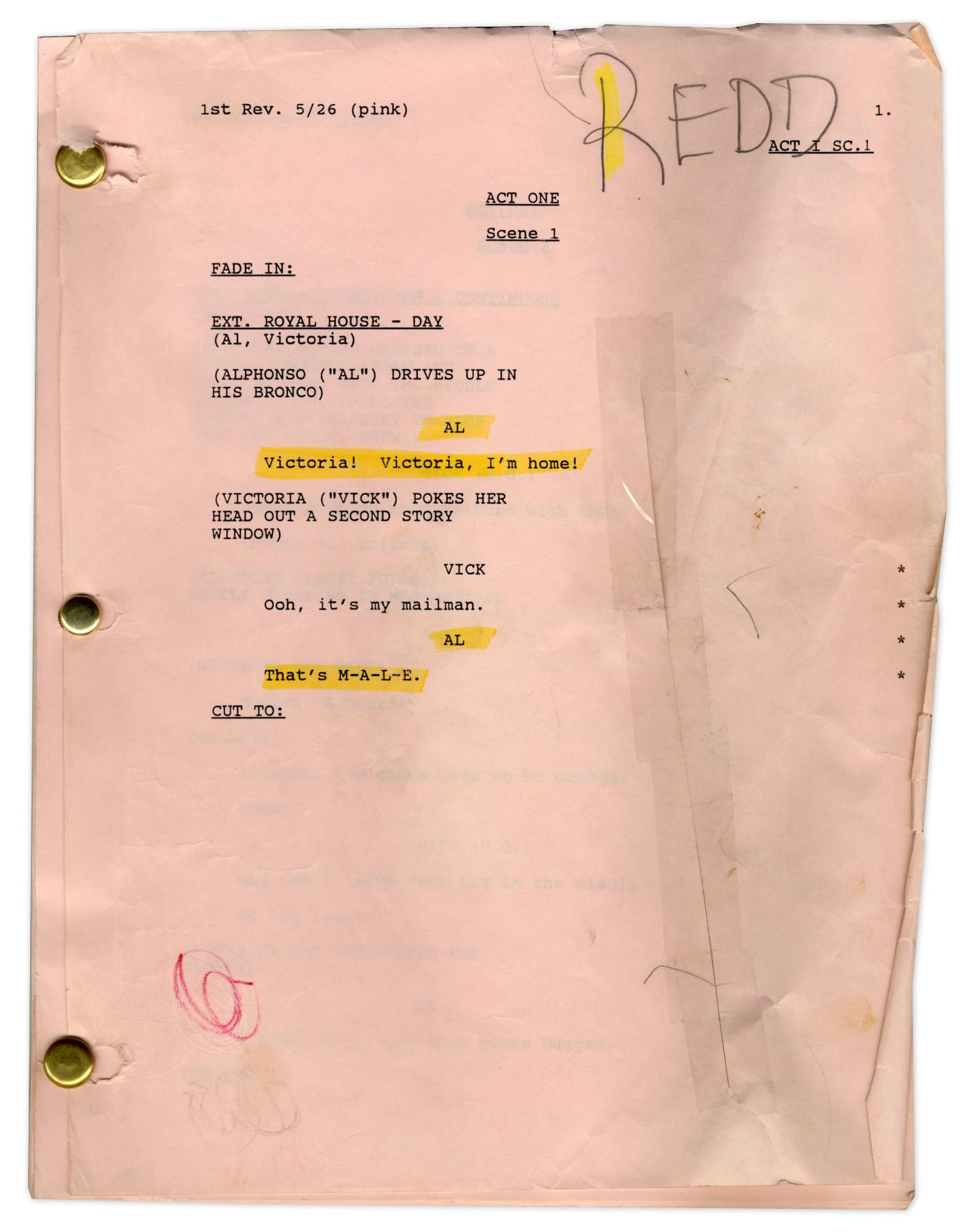 ''The Royal Family'' Script Owned & Annotated by Redd Foxx -- 47 Pages, Missing Front Cover -- Good Condition -- From Redd Foxx Estate